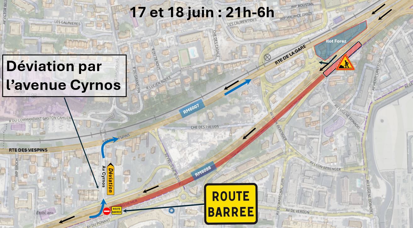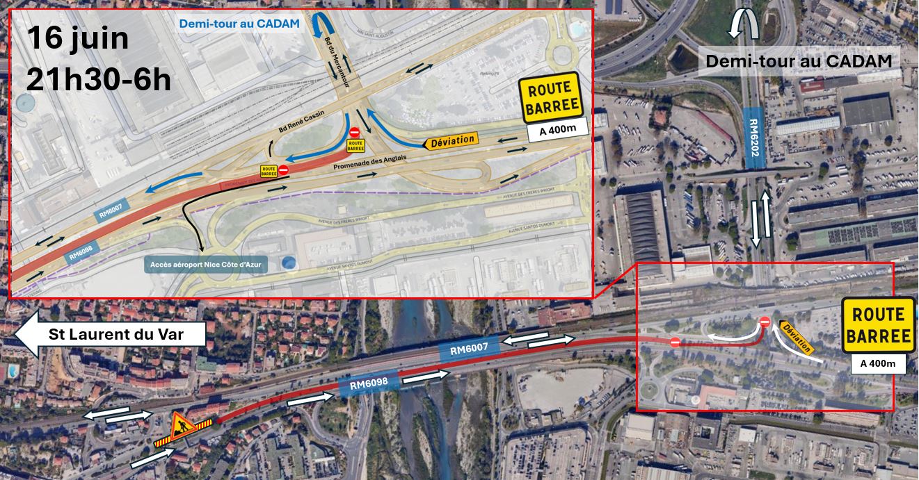Pour la dépose de la passerelle piétonne qui enjambe la RM 6098, la Route du Bord de Mer sera fermée à la circulation :
